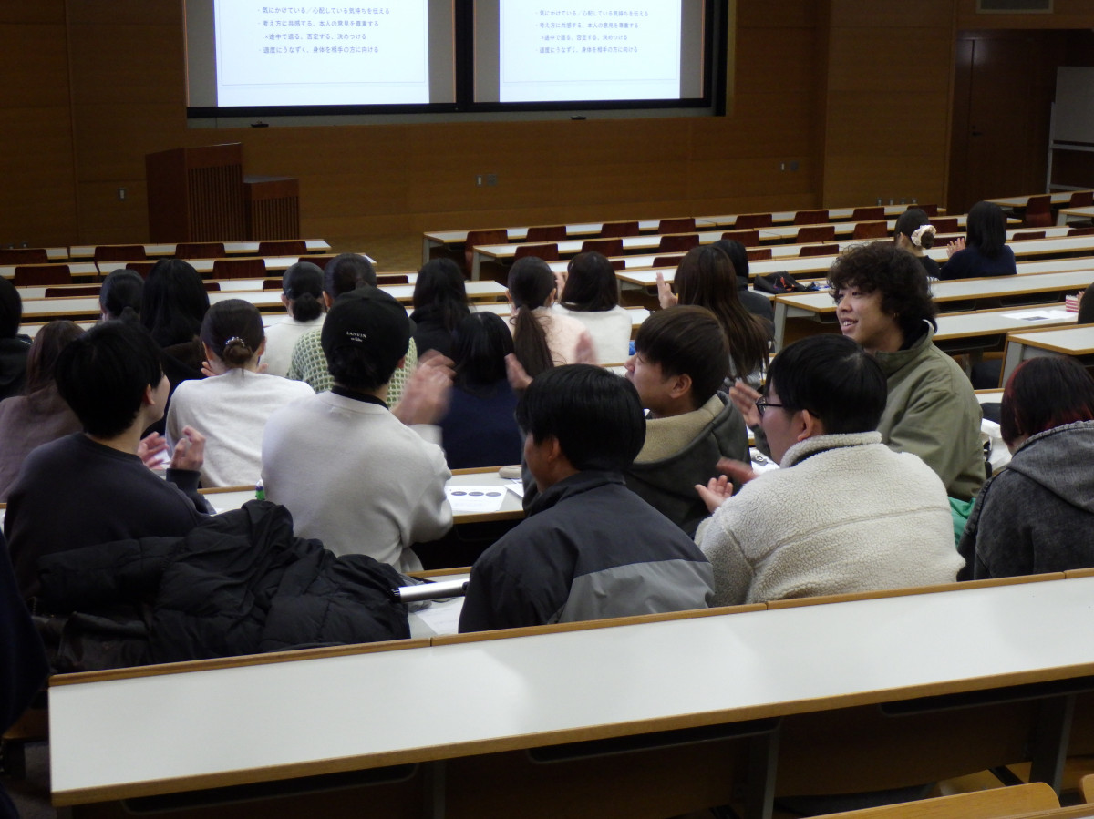 令和7年12月23日(水)、出雲保健所・心の健康支援課の藤井佑衣保健師をお迎えし、看護栄養学部2年生を対象に「こころの健康を守るために」をテーマに健康教育講演Ⅱを開催しました。