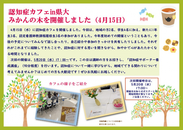 認知症カフェ(みかんの木)を開催しました!(4月15日)