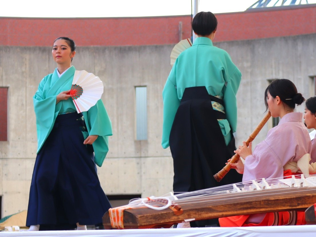 外部から生田流筝曲の先生をお招きし、指導していただいています。「さくらさくら」「六段の調」などの古典から、馴染みのあるポップスなど部員が選んだ曲を練習しています。創部したばかりですが、飛鳥祭では尺八部との合奏にも挑戦しました。音楽を通して、日本文化に触れてみませんか?