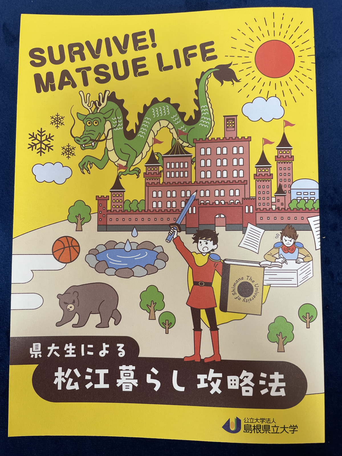 大学生活や一人暮らし、アルバイト、休日の過ごし方など松江Cの学生に必要な情報が詰まった1冊になっています。(2025.5作成)