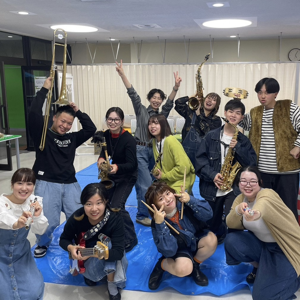 ジャズ音楽って普段聞かないし…。 大学では新しいこと始めたいけど楽器は…。 ジャズ研究会は、吹奏楽の曲もJPOPも演奏するし、経験など関係なし! アットホームな雰囲気で先輩や他学科の人とも気軽にお話しできます! 私たちと一緒に演奏してみませんか? |
