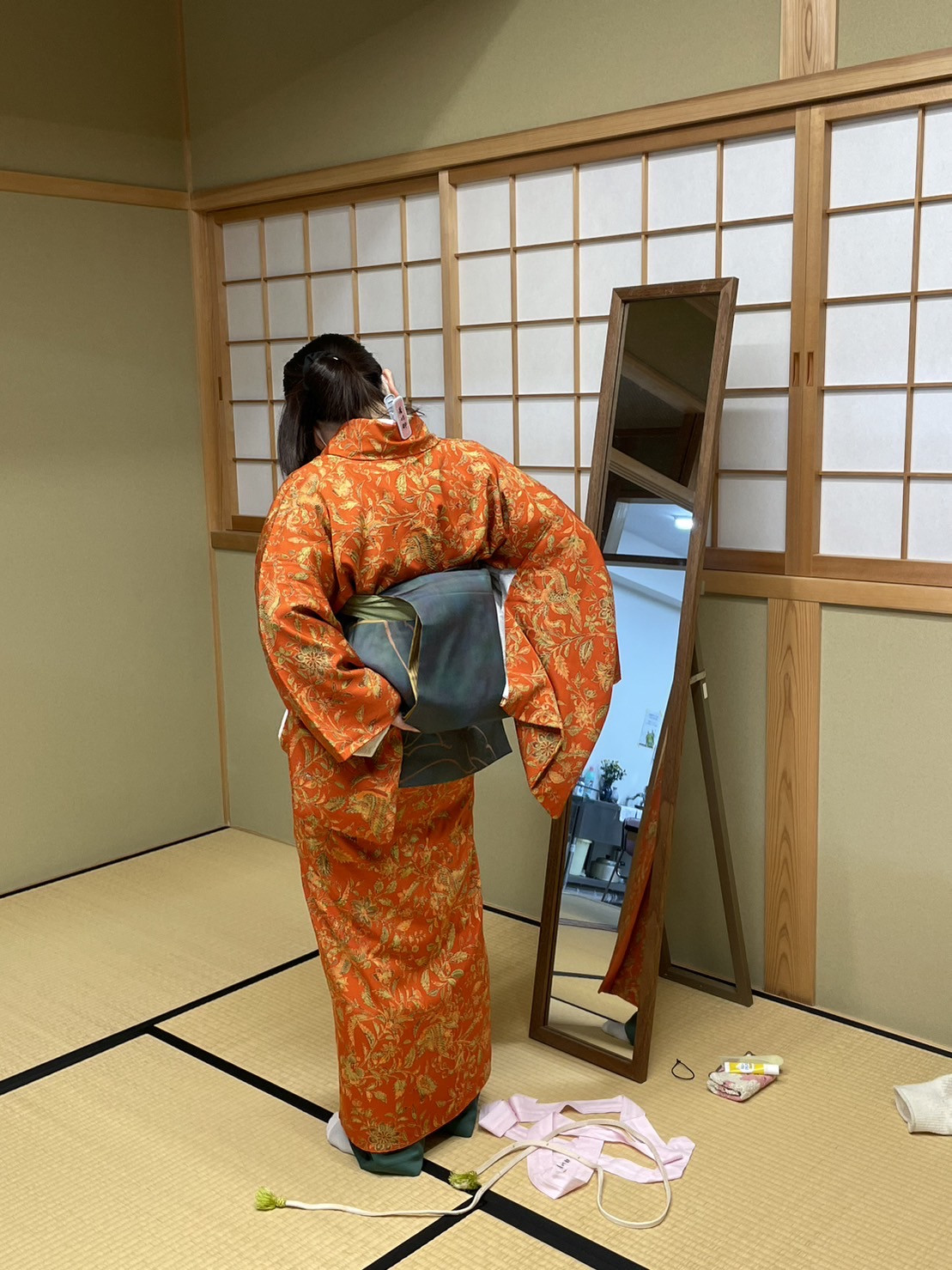 月曜日と金曜日で別れて、1人で着物を着れることを目標に、着物の着付けのお稽古をしています。夏休み前のお稽古では、浴衣の着付けのお稽古もしています。
