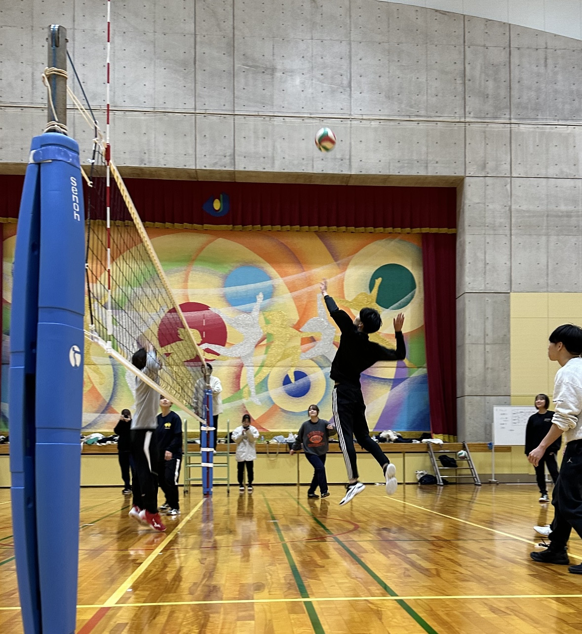 毎週火曜日に体育館でバレーをしています!初心者の人も多いので、みんなで楽しくバレーをしましょう。