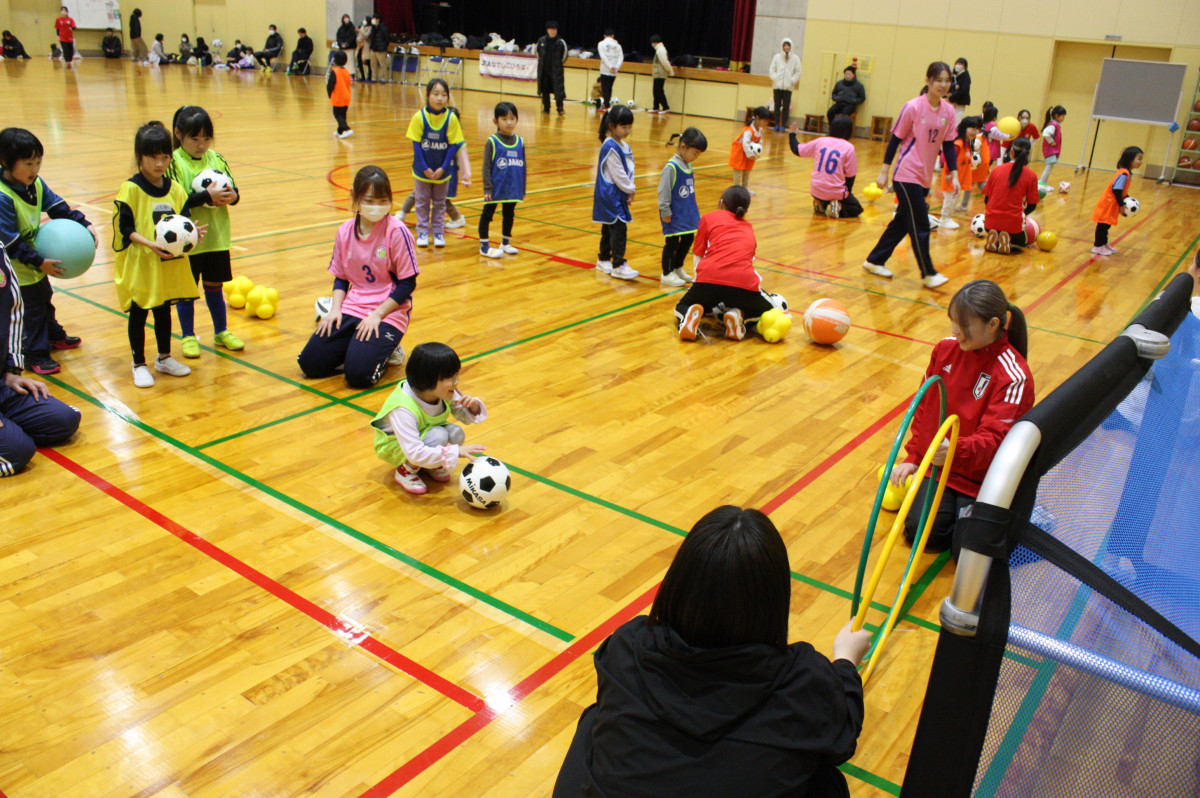 | 活動内容 | 運動好きな子どもと、運動指導の得意な学生を沢山増やし、地域に貢献したいとの思いから「JFAなでしこひろば」をスタートし、2023年の10月より月1回のペースで開催しています。対象は9歳以下の女の子で、サッカーに限らず、様々な運動遊びを取り入れたプログラムを考え実践しています。 ※JFA:(公財)日本サッカー協会 |
