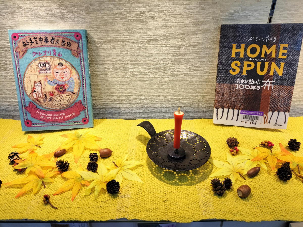 今回は、そんな織物に焦点を当てて展示しました。簡単に使える織機も展示していますので、是非織ってみてください。※今回、展示している織物は、全て本学の塩谷先生の作品です