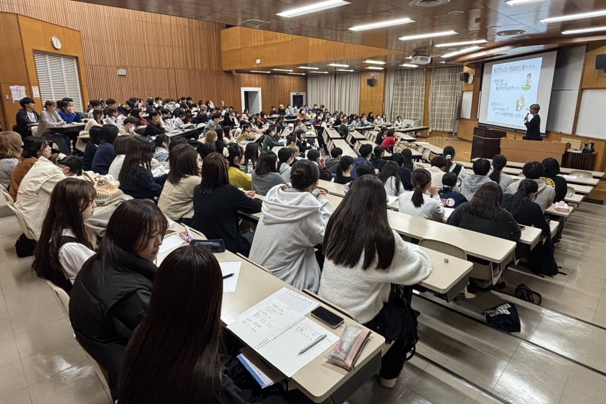 元なでしこジャパンキャプテン、なでしこジャパンコーチの大部由美さん(鳥取県境港市出身)をゲストスピーカーとしてお招きし、「健康スポーツ学概論」の1コマ(全学科160名対象)で講義をして頂きました。