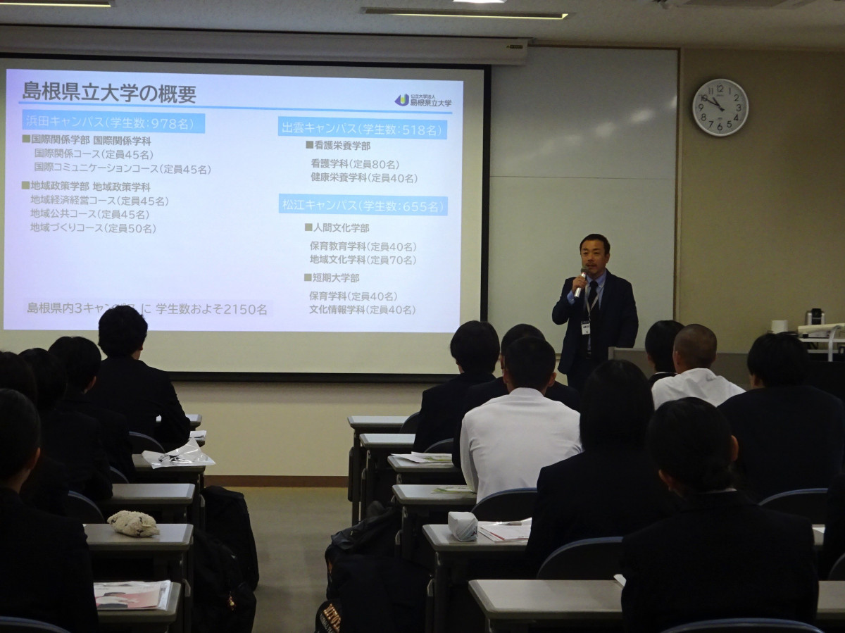 11月6日(木)に三刀屋高校2年生38名の皆様がご来学され『模擬講義』『学部・学科説明』『施設見学』を行いました。