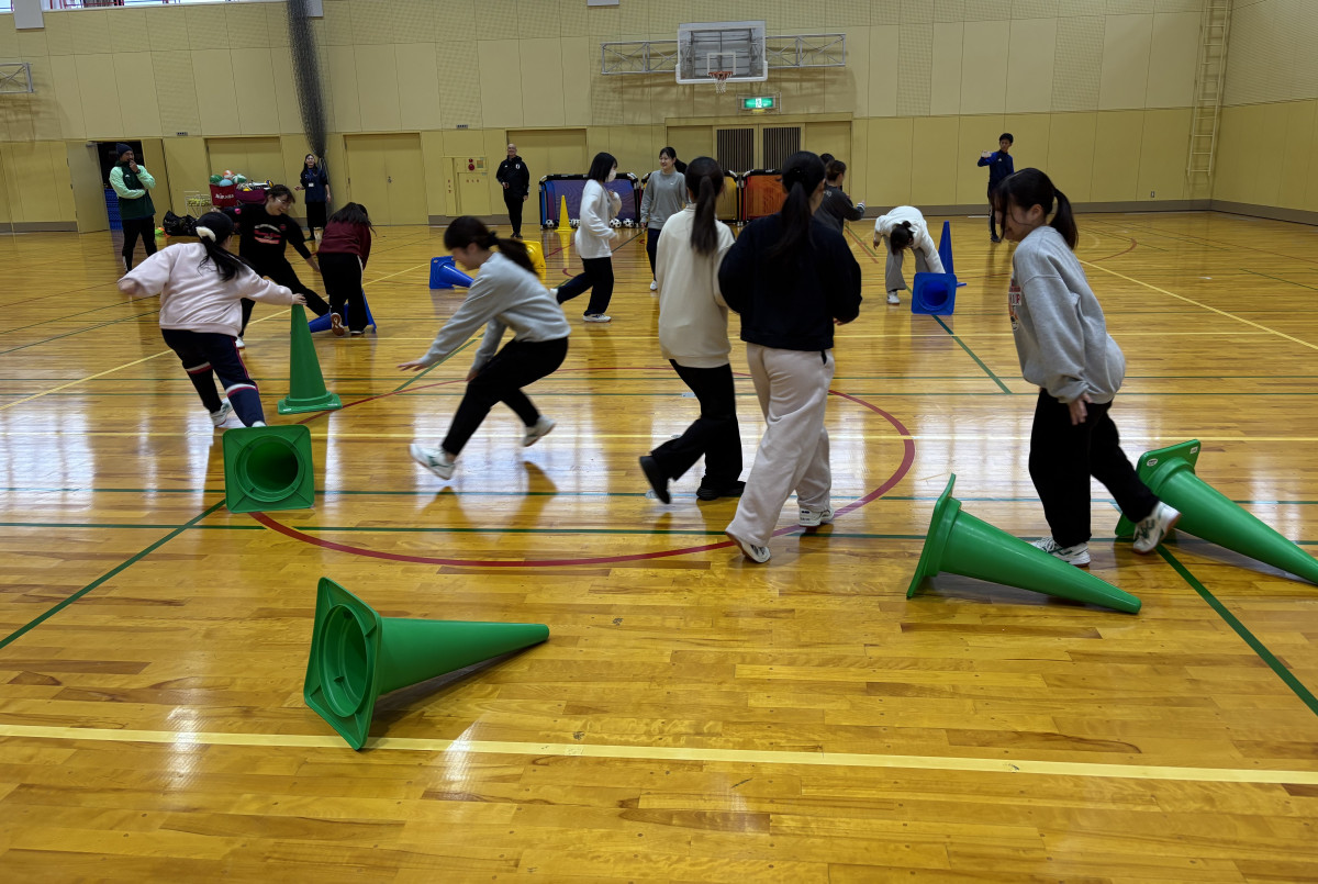 キッズリーダー講習会に参加して、子どもが運動を「楽しい」「やりたい」と感じられるようにするためには、保育者の関わりがとても重要だと学びました。実際に自分たちも運動遊びを体験したことで、子どもがどんな気持ちで取り組んでいるのか、またどのような関わりがあればやる気が高まるのかをより理解できたように思います。今後、実習や"なでしこひろば"などのボランティア活動でも、今回学んだ言葉かけを意識しながら、子どもが前向きに取り組めるような関わりをしていきたいです。