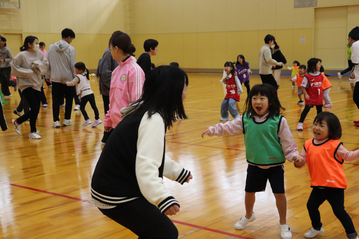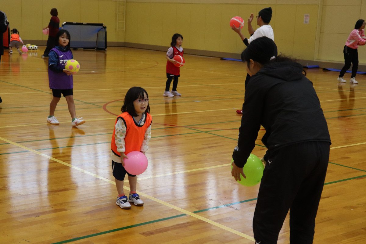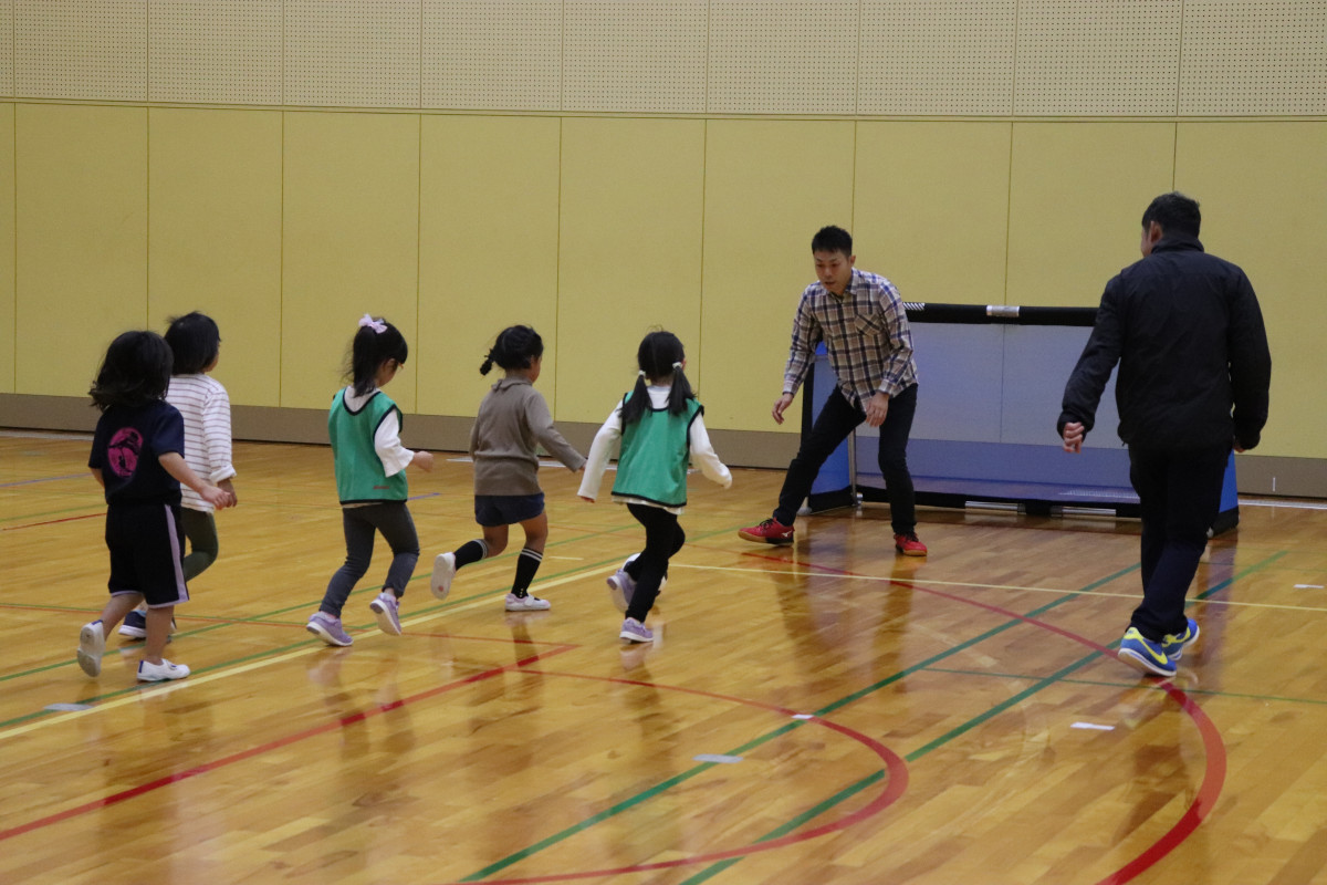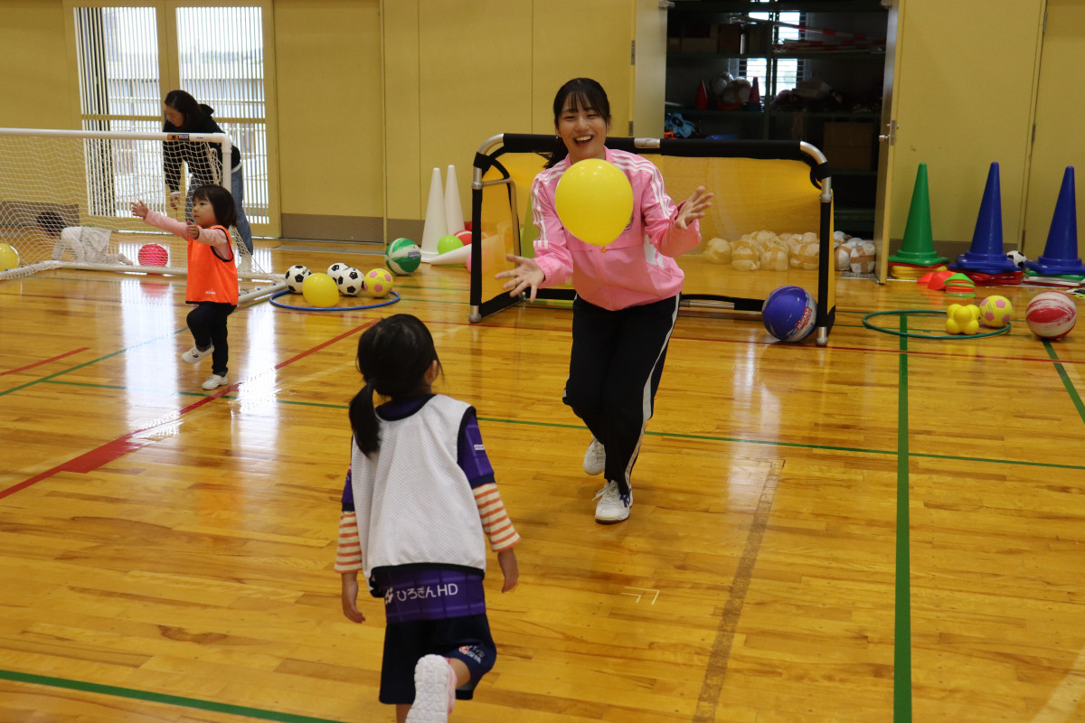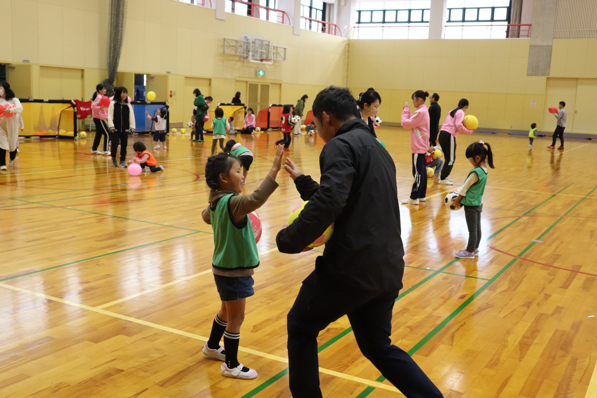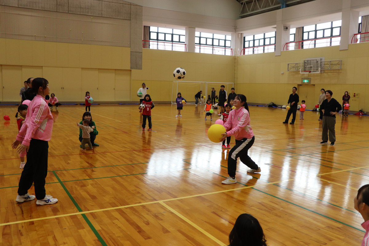 公開講座「親子ボール遊び教室」を11月1日(土)に体育館で開催しました。当日は親子29組の皆様に参加いただき、サポート学生11名の手を借りながら、親子でのボール遊びやサッカーなどをしました。最後の種目は、子どもVS保護者のサッカー対決!子どもも保護者も良い汗をかきました!