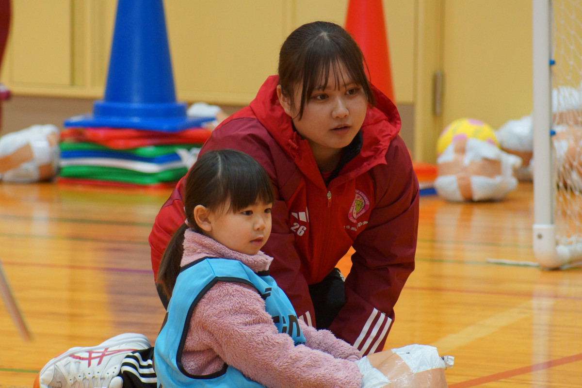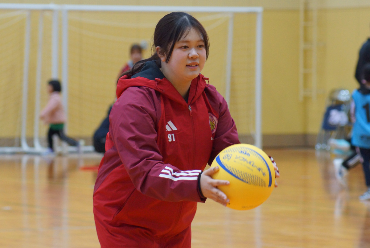 私は1年生の頃から"なでしこひろば"の活動に参加し、「笑顔とハイタッチ」を大切にしながら、多くの子どもたちとサッカーや運動遊びを通して関わってきました。2年生では部長を務め、仲間と支え合いながら活動を進める中で、周りを見て動くことや協力することの大切さを学びました。"なでしこひろば"で出会えた子どもたちや仲間、先生方とのご縁に感謝し、ここでの学びをこれからも大切にしていきたいです。ありがとうごさいました!